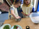 FSU children enjoy prepping vegetables, and smelling herbs and spices ready to make a Thai green curry. We practised snipping, tearing, chopping, and squeezing ingredients. We smelled and named the ingredients, as well as discussing healthy foods.