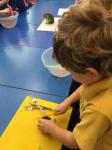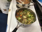 We have been busy making soup today. The children washed, peeled and chopped the vegetables. When it was finished, we all sat down to try our warm, tasty soup.
