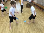 We worked with a partner to practise batting and catching beanbags. We practised using our ‘cupping hands’ and watching the beanbag.
