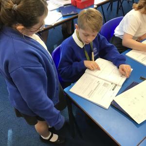 Great to see students in Y5 helping their peers in Maths this morning.