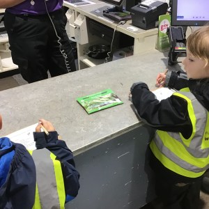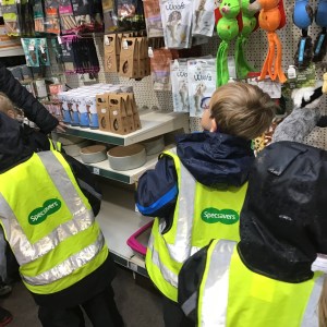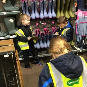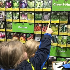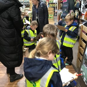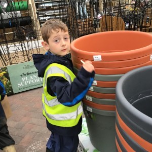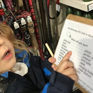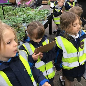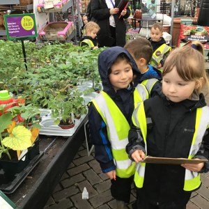 FSU group 1 use phonics to find things on their gardening list at Woodmansey Garden Centre