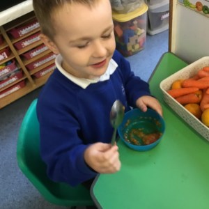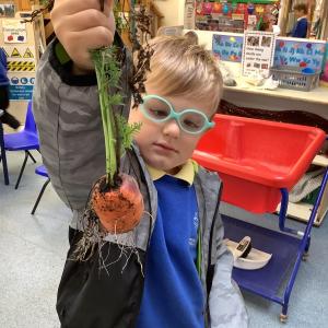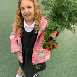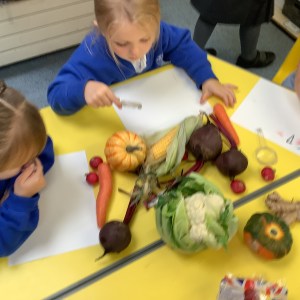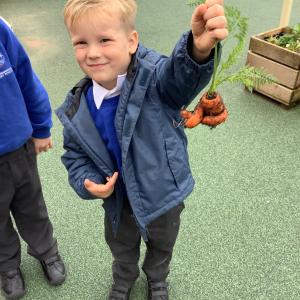 Digging up carrots and drawing Harvest veg…