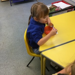 We touched and sniffed, and used hand magnifiers to look closely…