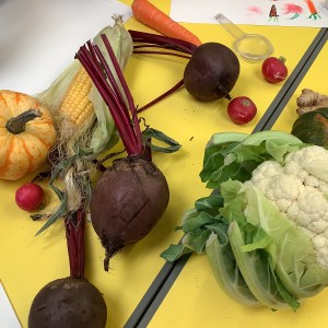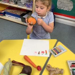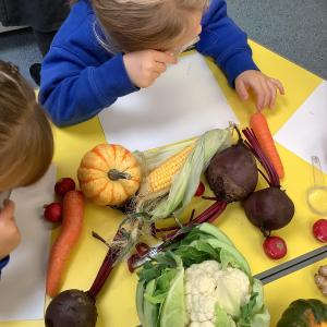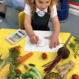 FSU dig up carrots and enjoy using pastels to draw Harvest veg