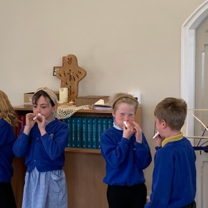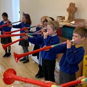 Using chime bars to play and sing along to ‘Hot Cross Buns’, then adding in other instruments and performing for an audience…