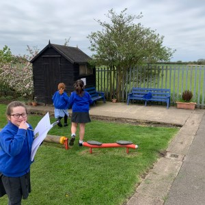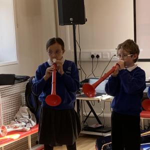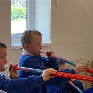While learning about sound, year 3/4 spent the afternoon looking at what one needs to physically make sound travel over distance.