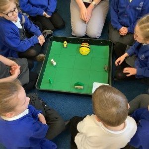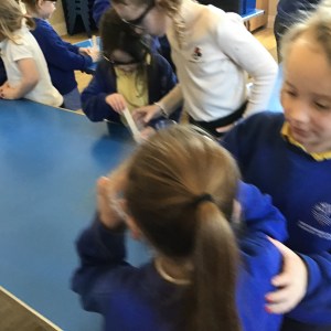 Today the children in 3/4 were writing a script for their own news coverage of an event that took place in a story we were learning about and then performed it for all of us.