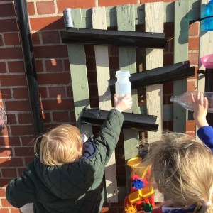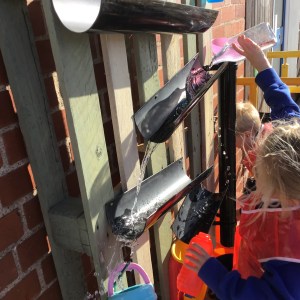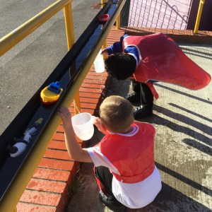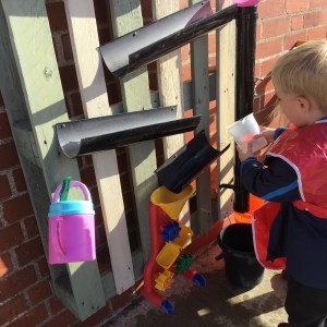FSU enjoy our new water wall and canal system made from old pallets and guttering!