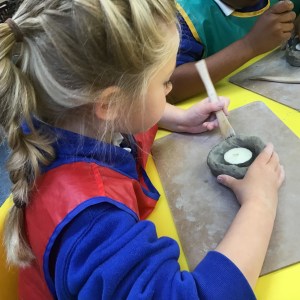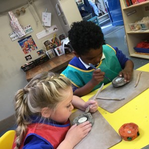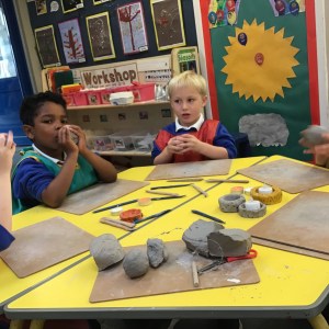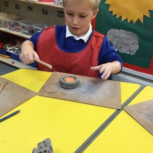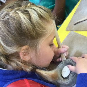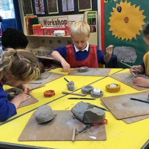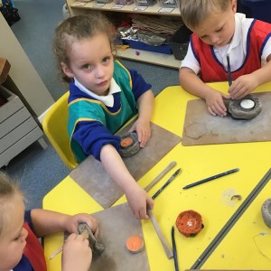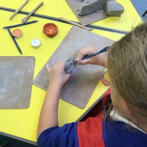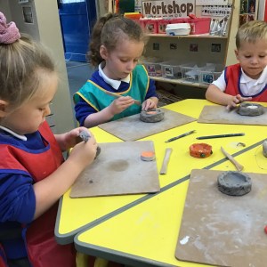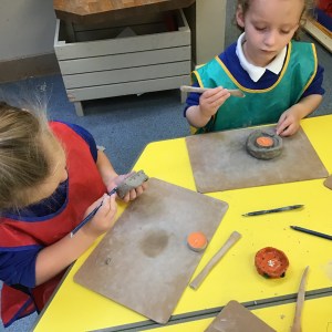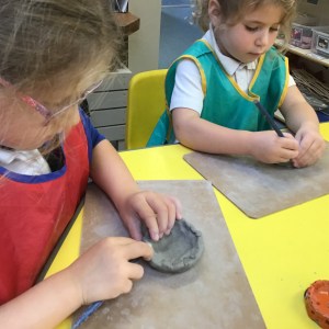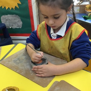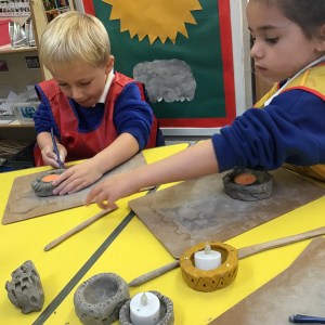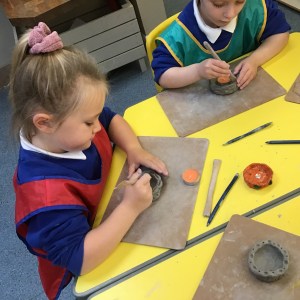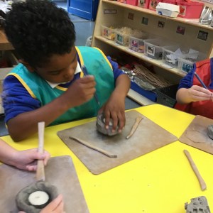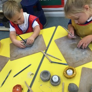FSU explore clay and tools to create Diva lamps for our Diwali learning