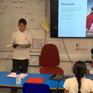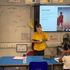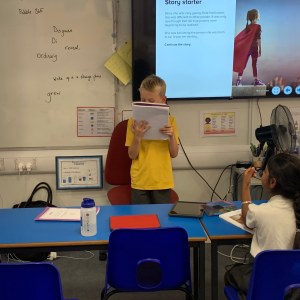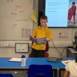 After working incredibly hard on some independent creative writing, some Year 3 students eager to share their writing with the class, Mrs Owst and myself.
